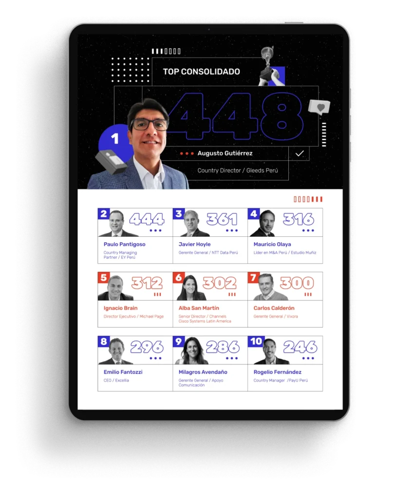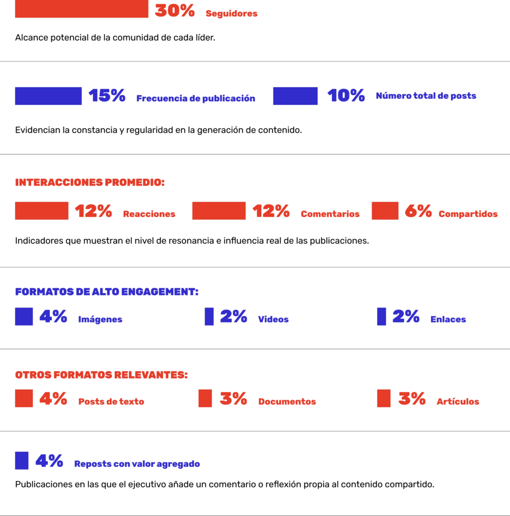 en LinkedIn, asignando diferentes pesos a cada variable para determinar el puntaje final de cada ejecutivo.