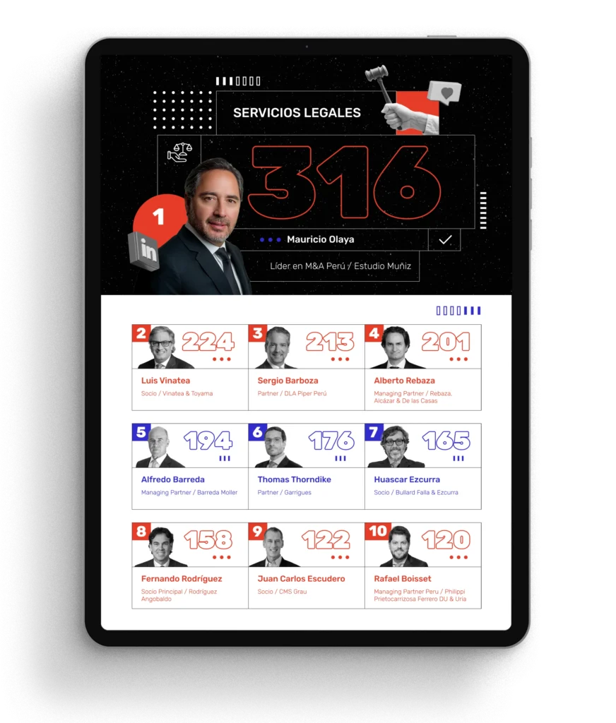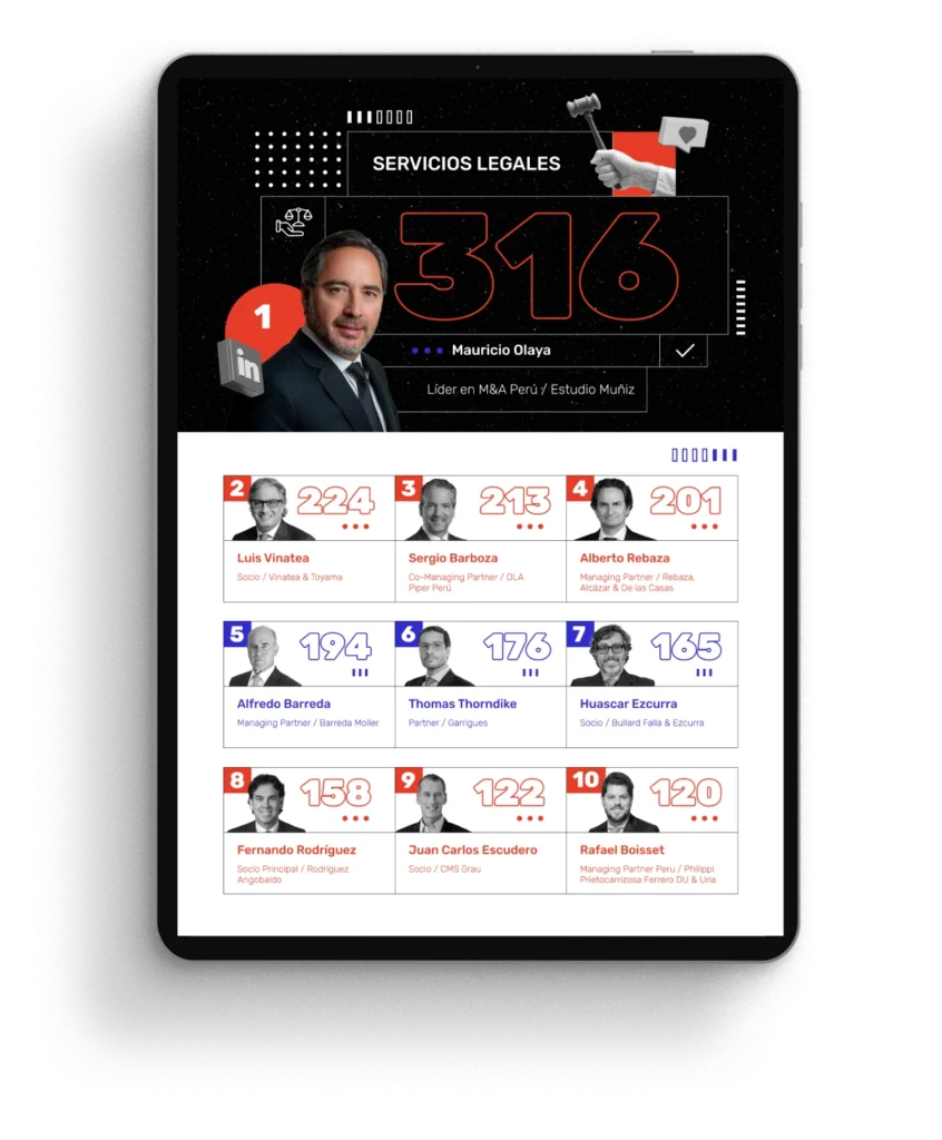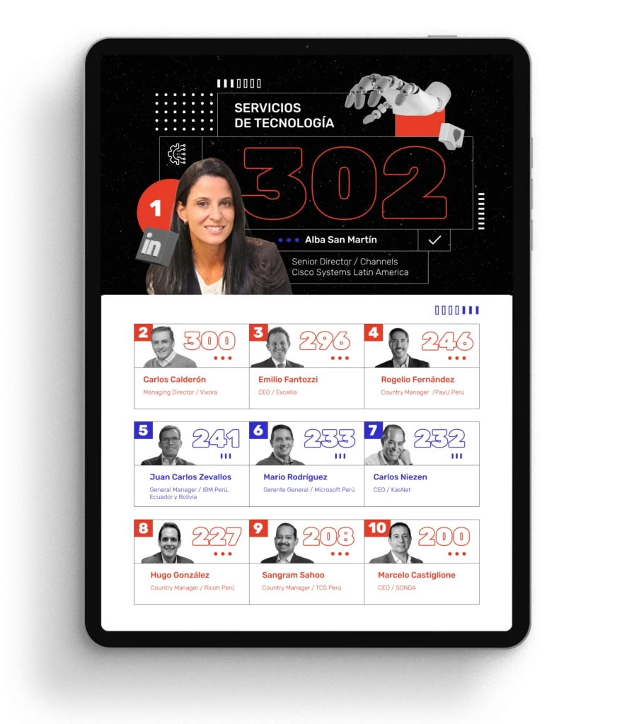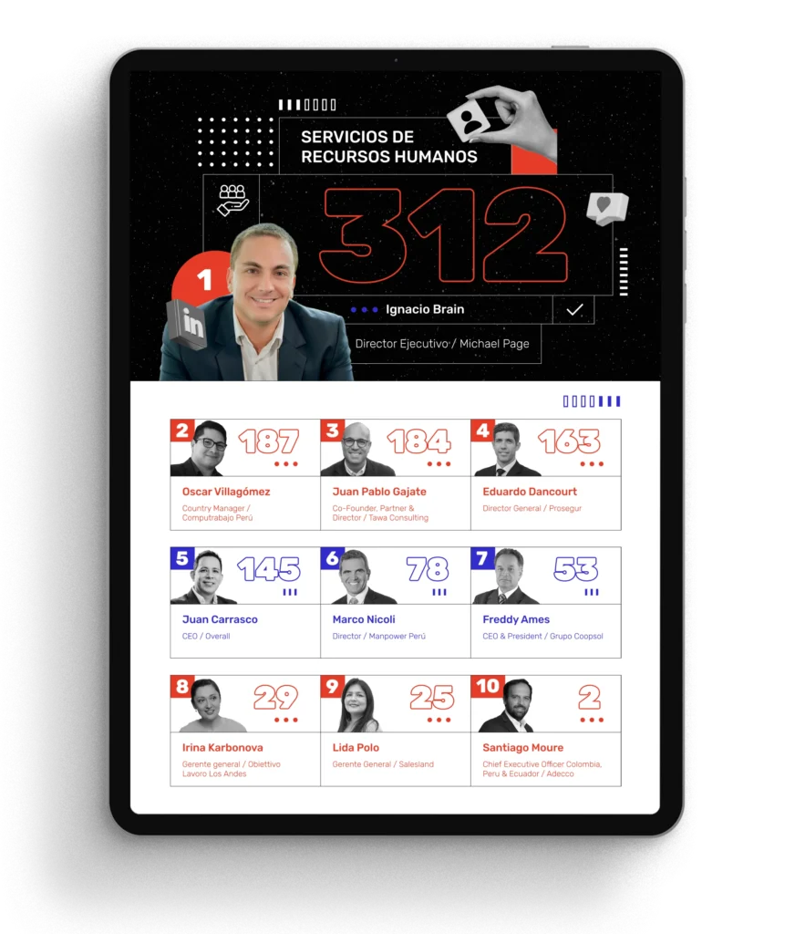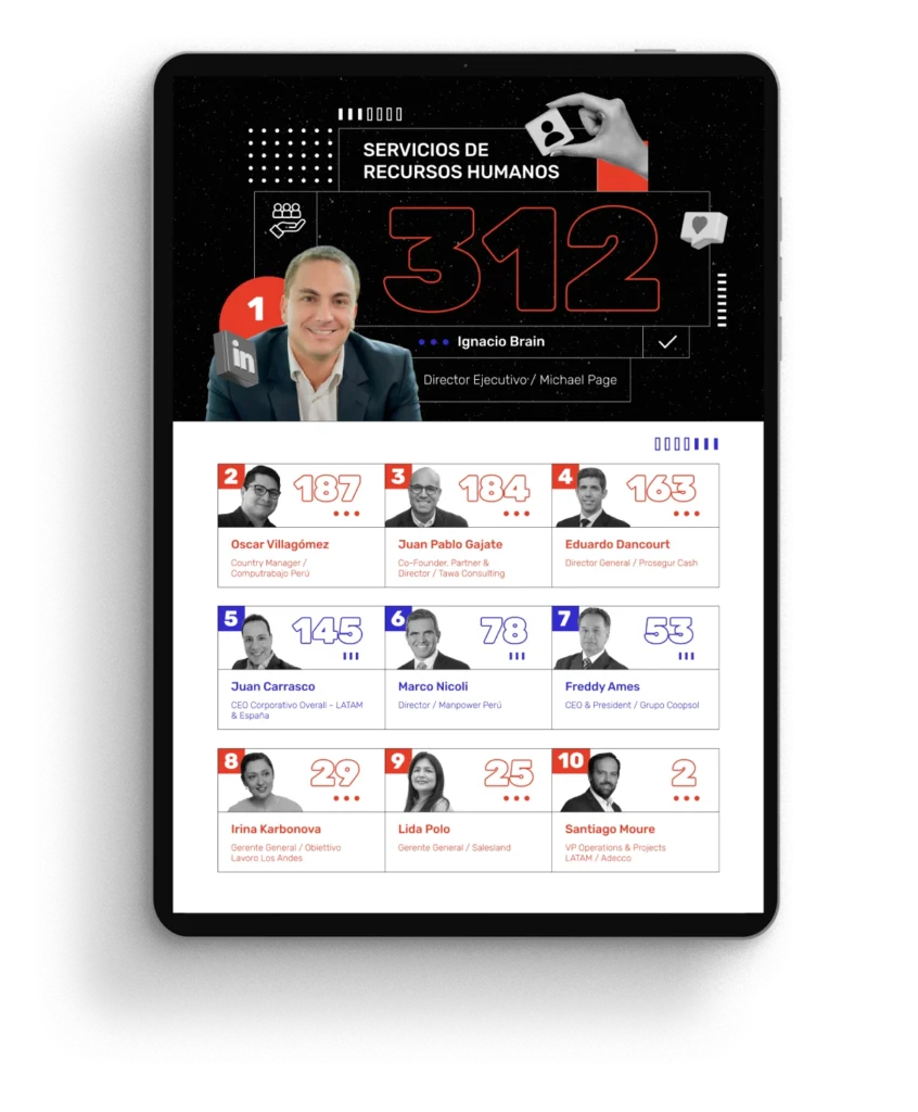 Una vez aplicado el primer filtro se analizaron los perfiles en LinkedIn de los líderes B2B en cada categoría.